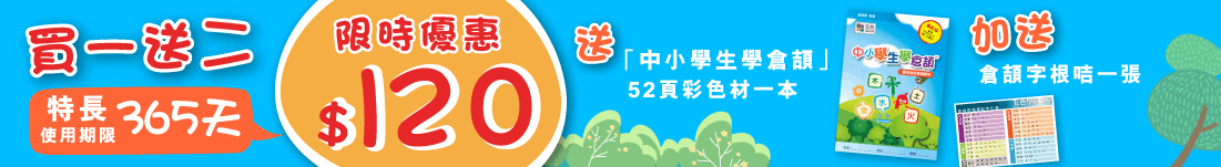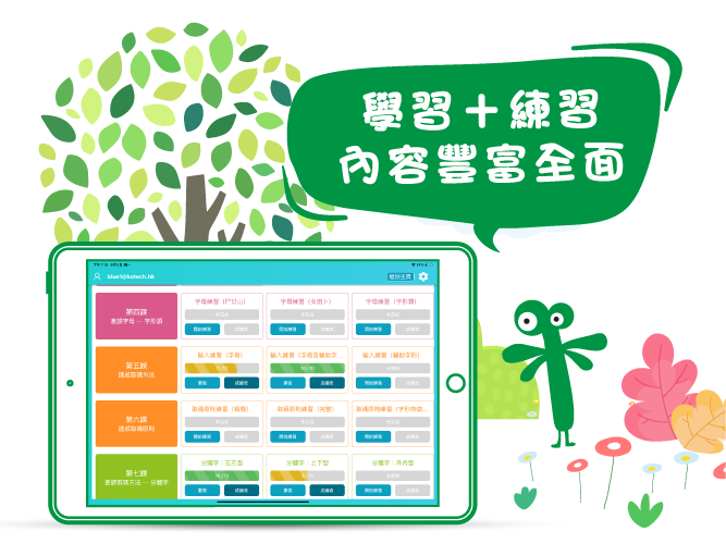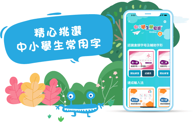 <中小學生學倉頡>內所包含的練習字,是專為中小學生從日常生活中挑選出來的中文字,讓學生在練習過程中能夠掌握常用字的取碼,活學活用。