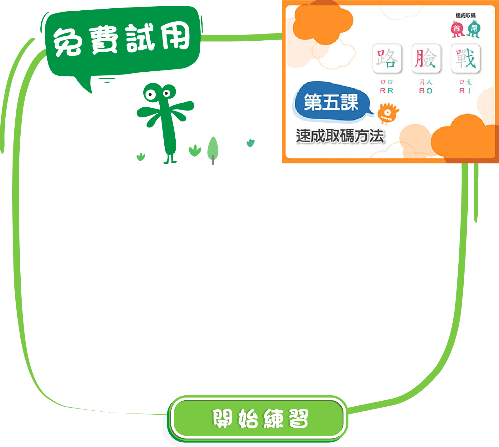 課程設有10個課堂,從最初的認識倉頡字母及輔助字形開始,然後學習速成輸入法。整個課程合共300分鐘內容,共有30個不同練習。