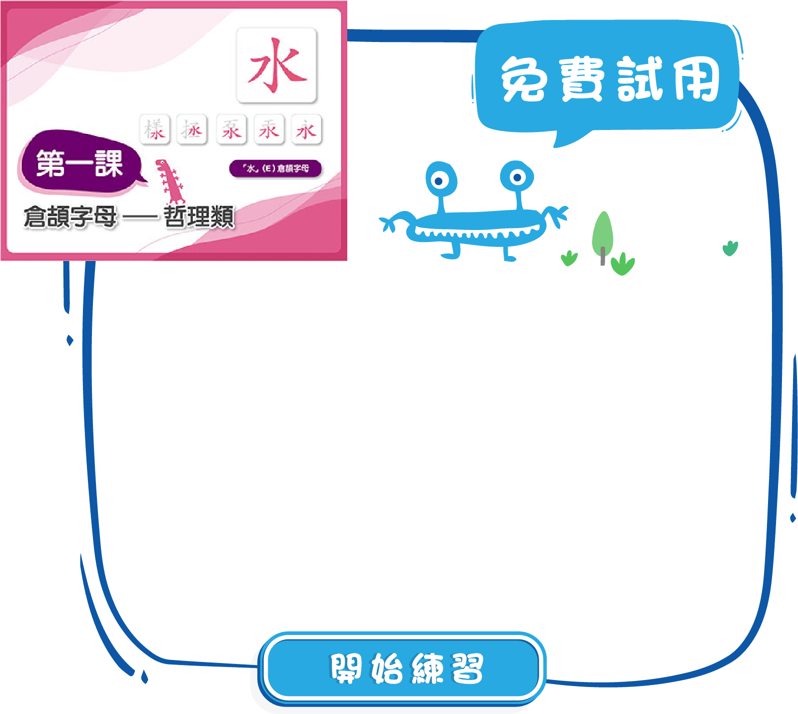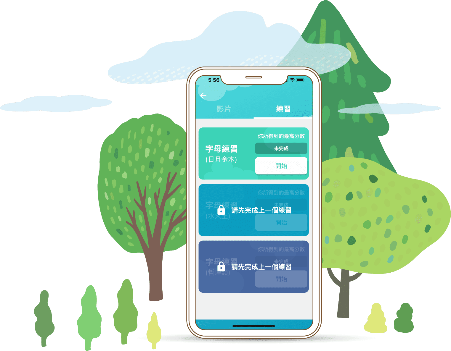 完成課堂後,App設有三個不同程度的練習,除了令初學者鞏固所學的知識外,亦確保他們能夠徹底明白課堂的內容才開始下一課。