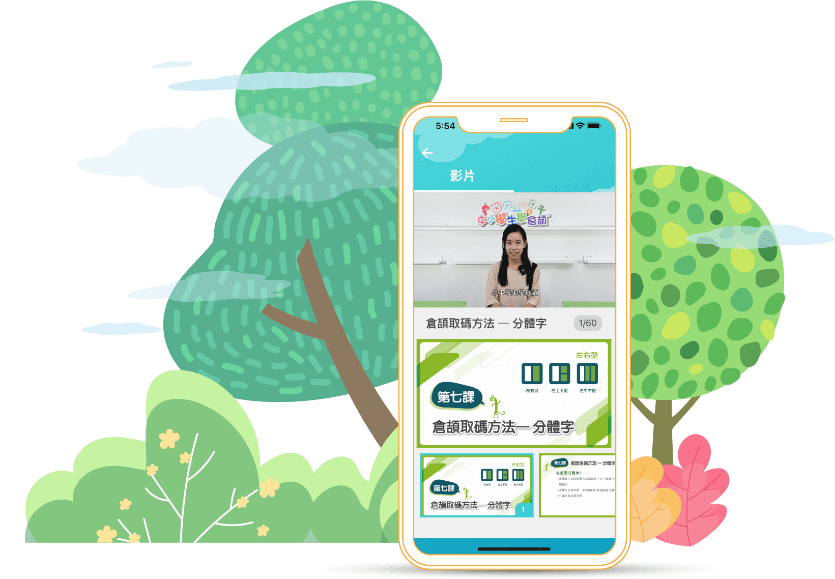 整個課程是由我們的專業導師編製,投影片解釋了每個倉頡字母和相應的輔助字形。內容以彩色文本和圖案呈現,再配合專業導師所拍攝的教學影片,使課堂的內容更清晰易明。